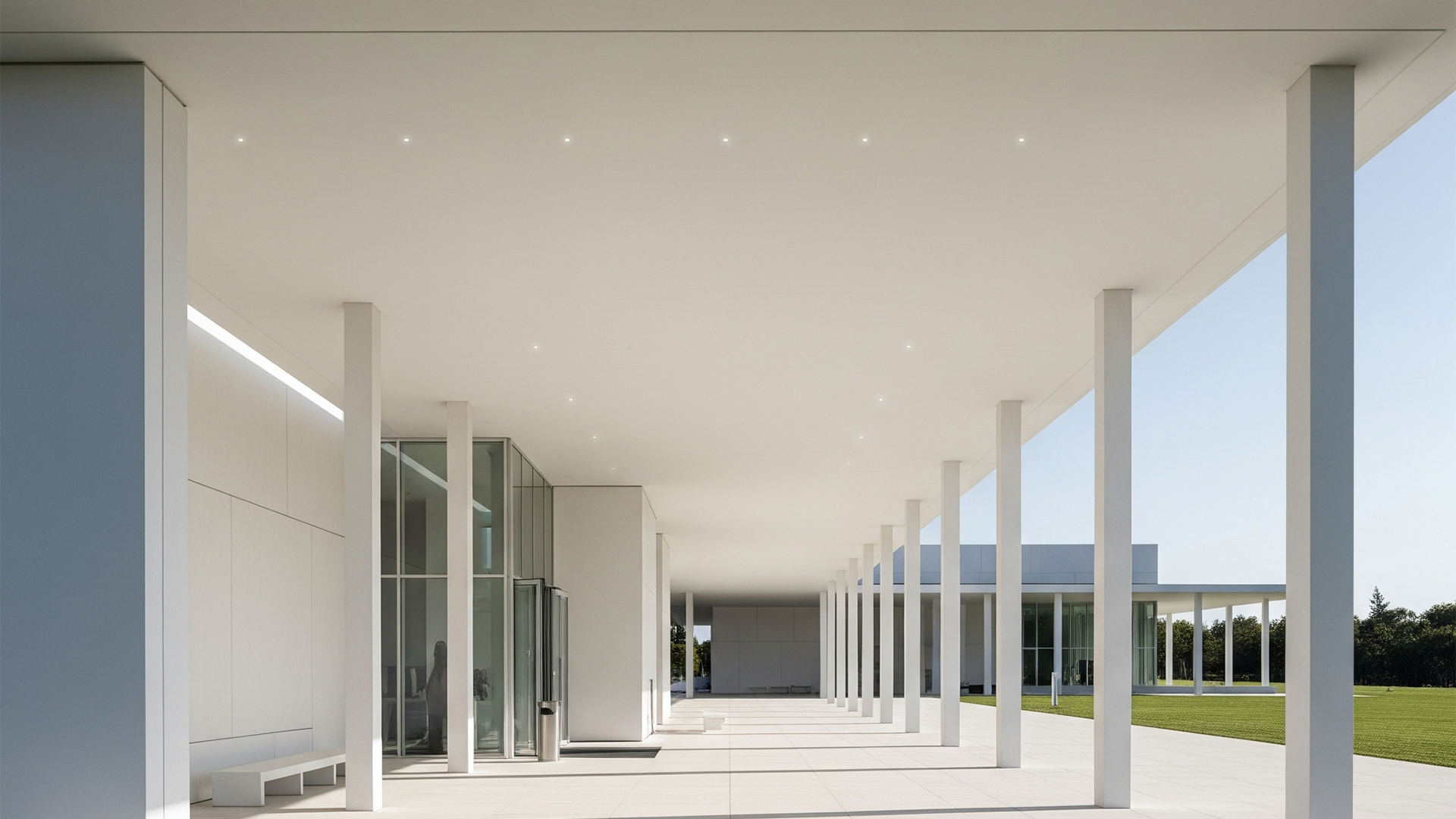 MINILED EST 1307 is a recessed ceiling light for outdoor and indoor use made of BETALY® in colour White 392. It can be installed either with a masonry counter-box or in an ultra-thin recess of only 30 mm between the plasterboard panels and the ceiling.