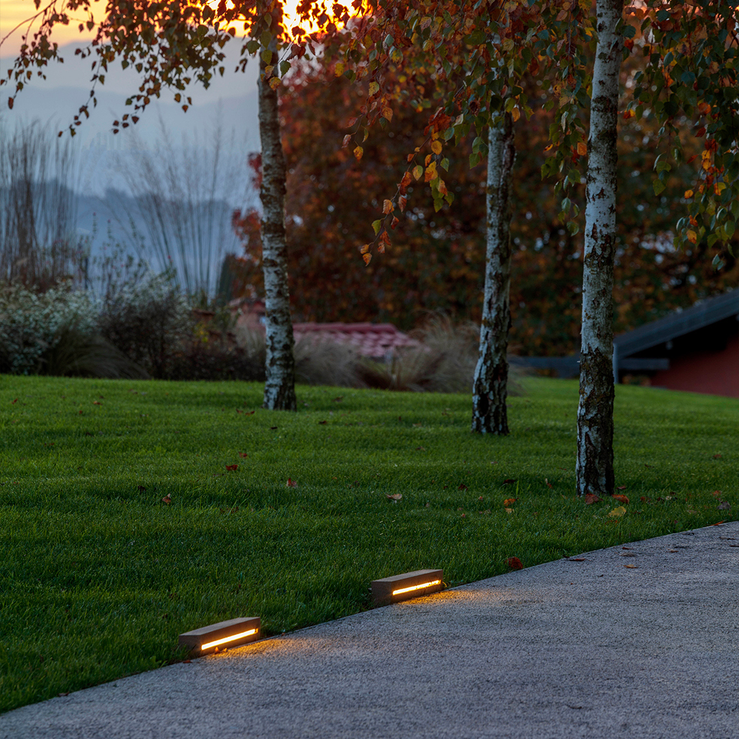 Each area of the garden has been designed to be enjoyed and appreciated even at dusk and in the dark, thanks to a series of scenic elements that alternate light and dark and discreet service lighting elements.